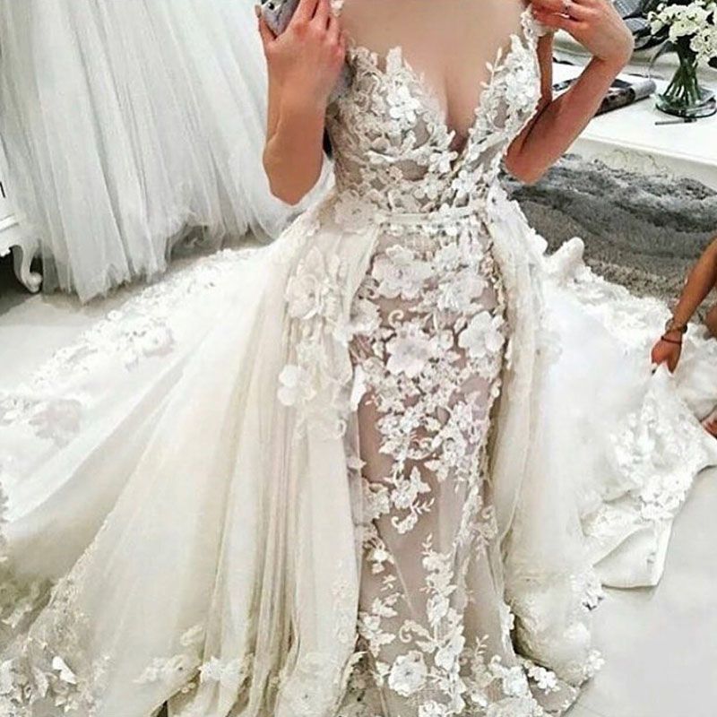 Lace illusion strap wedding dress with a tulle overskirt looks so natural that you'd never guess it's a convertible dress. If you live in an incredibly hot destination, you may want to opt for you can buy long sleeve dresses from your local bridal boutique or online. Look no farther than short or long sleeve wedding dresses. Women's wedding dress for bride mermaid long sleeve lace wedding dress bridal gowns detachable train. Give traditional bridal looks a modern twist. All item(s) can be returned within 7 days upon receiving and the shipping time is not. Lace wedding dresses with detachable train long sleeves bridal gown plus custom. Other perks of choosing a wedding dress with sleeves?